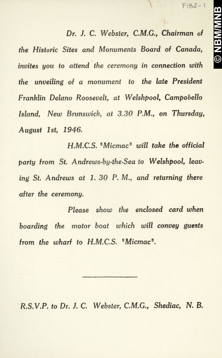 Title: Roosevelt Memorial Ceremony, Campobello Island, New Brunswick