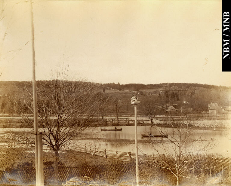 photograph: Canoeing during the Spring Freshet, Looking towards College Hill, Fredericton, New Brunswick, 1887 Canadian albumen print mounted on paper (light card) 18.9 x 23.3 cm Gift of Dr. William Francis Ganong, 1942 New Brunswick Museum, (1987.17.1372) Return |