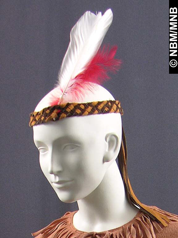 headband: 1979 First Nations; Wolastoqiyik leather and feathers 2.5 x 99 cm Neqotkuk (Tobique First Nation) Gift of Father Norman Thibodeau, 1992 New Brunswick Museum, (1992.16.7) Photographed by W. Mark Polchies Return |