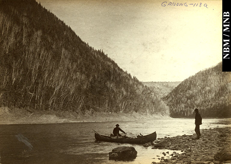 photographie : Hommes et canots wolastoqiyik, à courte distance en aval du ruisseau Red Pine, rivière Restigouche, Nouveau-Brunswick, v. 1900 canadienne épreuve mate au collodion 15,8 x 11,4 cm Collection William Francis Ganong Musée du Nouveau-Brunswick, (1987.17.666) retournez |