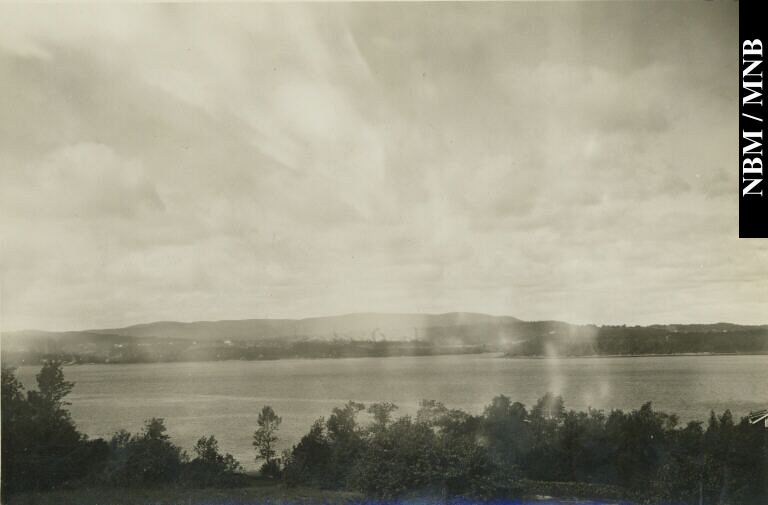 photographie : Browns Flat sur l'autre rive du fleuve Saint-Jean et Catons Island à droite, comté de Kings, N.-B., v. 1930 canadienne épreuve argentique 11,8 x 17,4 cm Collection William Francis Ganong Musée du Nouveau-Brunswick, (1987.17.921) retournez |