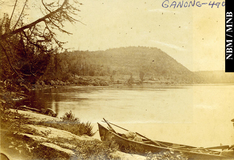 photographie : Canot wolastoqiyik avec vue de la montagne Wapskehegan, Nouveau-Brunswick , v. 1862 canadienne épreuve à l'albumine sur papier 9,3 x 19,6 cm Collection William Francis Ganong Musée du Nouveau-Brunswick, (1987.17.1176) retournez |