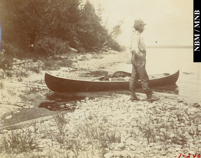photographie : William Francis Ganong à l'embouchure du ruisseau Sucker, lac Oromocto, comté d'York, Nouveau-Brunswick, 1903 canadienne épreuve argentique sur papier 9,1 x 12 cm Collection William Francis Ganong Musée du Nouveau-Brunswick, (1987.17.1218.240) retournez |