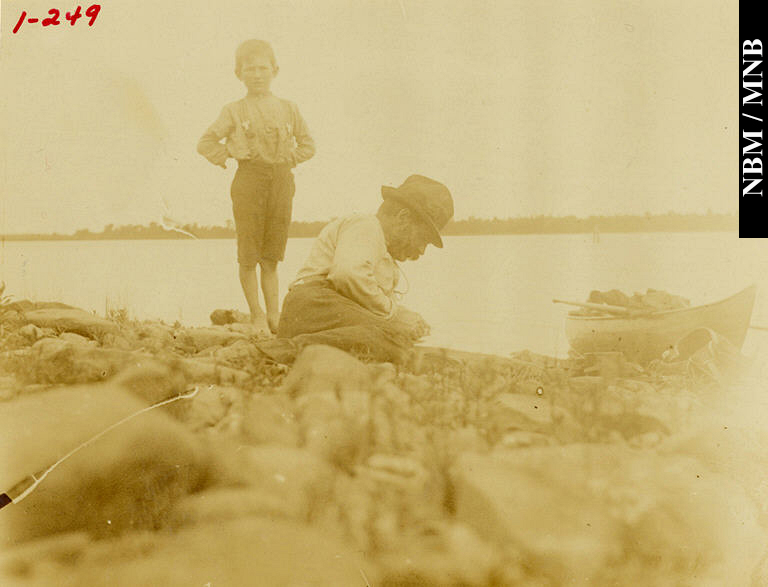 photographie : Marquage à la craie de la pierre indienne, avant de photographier, lac French, près d'Oromocto, comté de Sunbury, Nouveau-Brunswick, 1903 canadienne épreuve argentique sur papier 8,4 x 11,3 cm Collection William Francis Ganong Musée du Nouveau-Brunswick, (1987.17.1218.249) retournez |