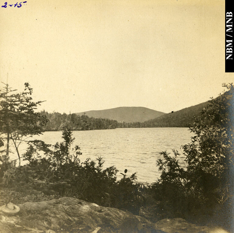 photographie : Mont Bernadin et bras Nictor de la rivière Little Tobique, comté de Restigouche, Nouveau-Brunswick, août 1903 canadienne épreuve argentique sur papier 8,5 x 8,6 cm Collection William Francis Ganong Musée du Nouveau-Brunswick, (1987.17.1219.15) retournez |