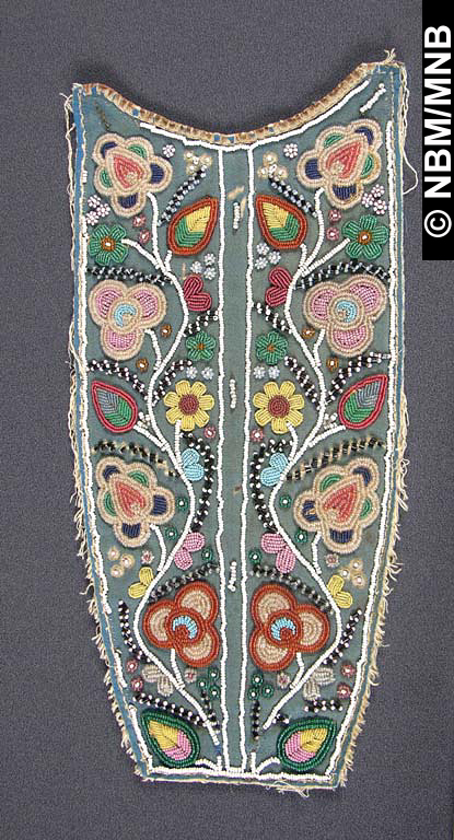 sommet de coiffure : 1850-1875 Premières Nations; Wolastoqiyik laine, lin et perles de verre 37 x 18 cm Don de Mary Ann Barker, 1907 Musée du Nouveau-Brunswick, (5073.1) retournez |