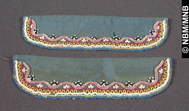manchettes : 1850-1875 Premières Nations; Wolastoqiyik soie et coton avec perles de verre 6 x 21 cm Don de Mary Ann Barker, 1907 Musée du Nouveau-Brunswick, (5073.2) retournez |