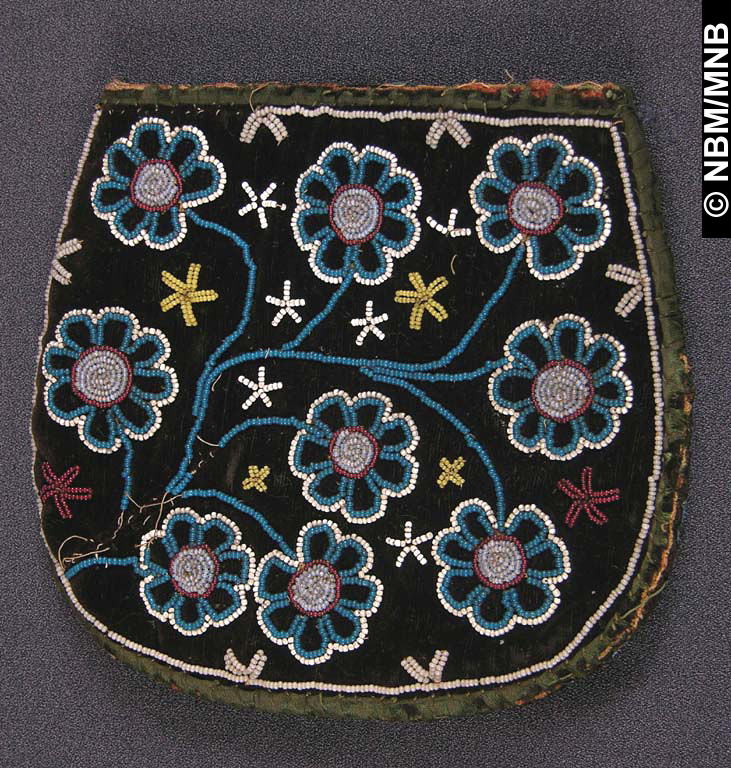 sac à main : v. 1850 Premières Nations; Mi’kmaq ou Wolastoqiyik ? soie et coton avec perles de verre 13 x 14,5 cm Don de Mme W.K. Crawford, 1907 Musée du Nouveau-Brunswick, (5076) retournez |