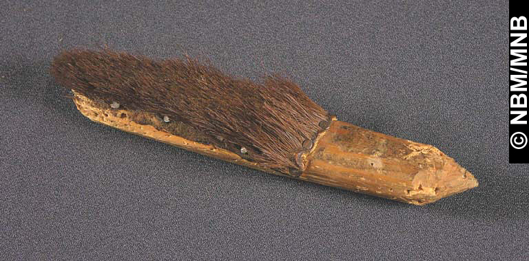 outil : v. 1900 Premières Nations; Wolastoqiyik bois avec peau 3 x 3 x 18,5 cm Pilick (Première Nation de Kingsclear) Don du Chef William Polchies, 1932 Musée du Nouveau-Brunswick, (16059) retournez |