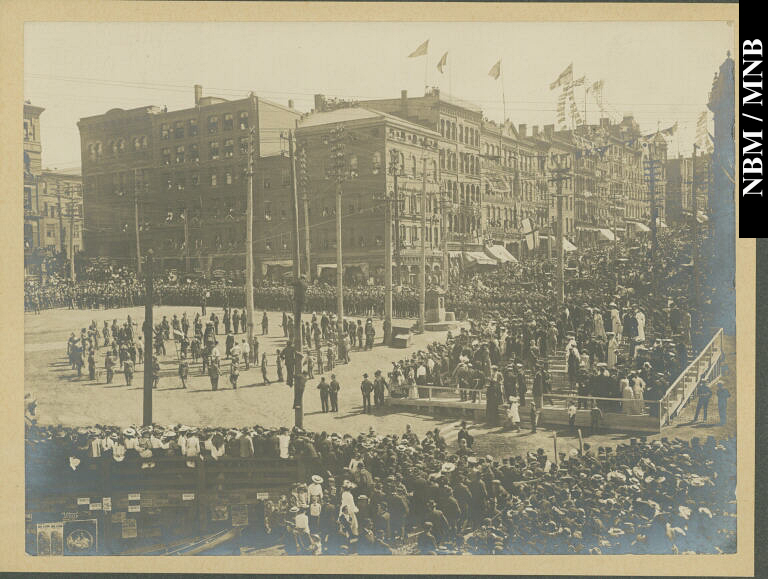 photographie : Fêtes du tricentenaire De Monts-Champlain - Danse guerrière, Market Square, Saint John, Nouveau-Brunswick, 24 juin 1904