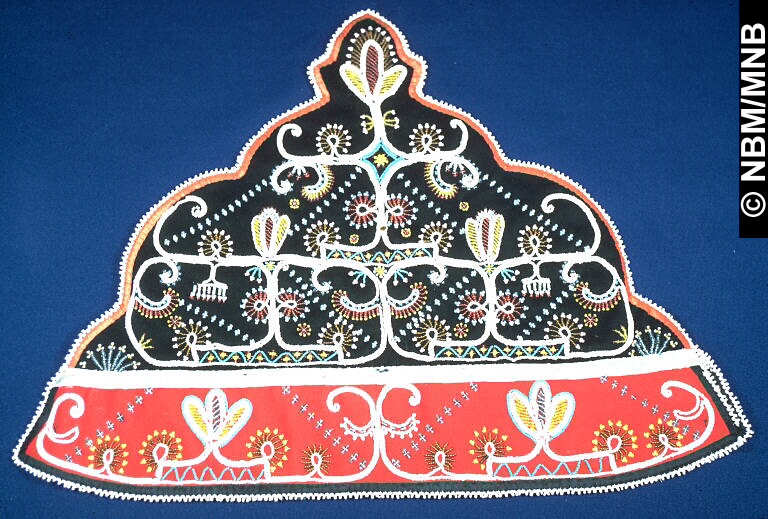 couvre-théière : v. 1840 Premières Nations; Mi’kmaq ou Wolastoqiyik ? laine avec soie, coton, crin de cheval et perles de verre 36,2 x 48 cm Legs de Mary Kearny Odell, 1938 Musée du Nouveau-Brunswick, (30113) retournez |