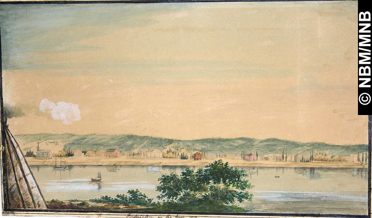 tableau : Fredericton en 1818 : Vue de la basse ville de Fredericton, siège du gouvernement du Nouveau-Brunswick, prise en 1818, 1818 British aquarelle avec plume et encre, rehaussée de blanc opaque sur papier vélin 21 x 36,7 cm Musée du Nouveau-Brunswick, (30188) retournez |
