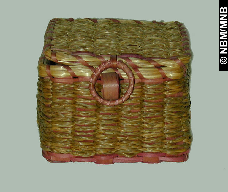 panier : 1890-1910 Premières Nations; Wolastoqiyik? éclisses de frêne teintes et tressées avec foin d’odeur 8,5 x 9,5 cm Collection Musée du Nouveau-Brunswick Musée du Nouveau-Brunswick, (X5523) retournez |