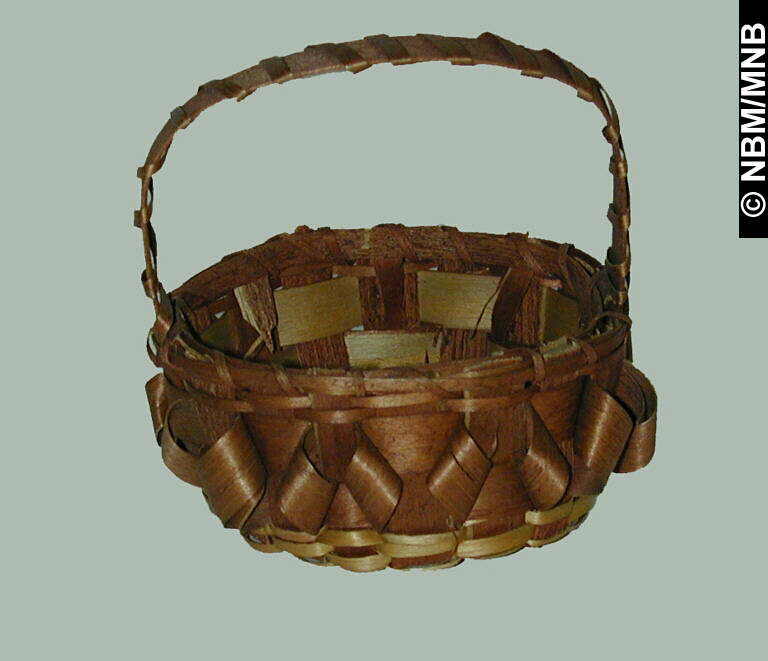panier : 1890-1910 Premières Nations; Wolastoqiyik? motif de losanges éclisses de frêne teintes et tressées 11 x 9 cm Collection Musée du Nouveau-Brunswick Musée du Nouveau-Brunswick, (X6162) retournez |