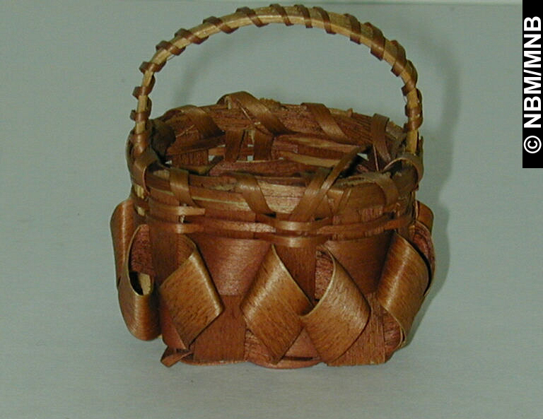 panier : 1875-1925 Premières Nations; Wolastoqiyik? motif de losanges éclisses de frêne teintes et tressées 6 x 5 cm Collection Musée du Nouveau-Brunswick Musée du Nouveau-Brunswick, (X6168) retournez |