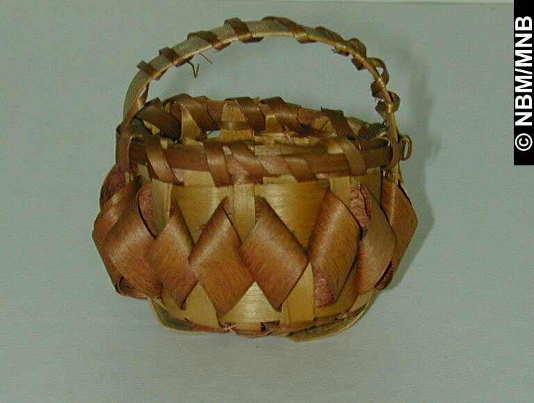 panier : 1875-1925 Premières Nations; Wolastoqiyik? motif de losanges éclisses de frêne teintes et tressées 5,5 x 5,5 cm Collection Musée du Nouveau-Brunswick Musée du Nouveau-Brunswick, (X6169) retournez |