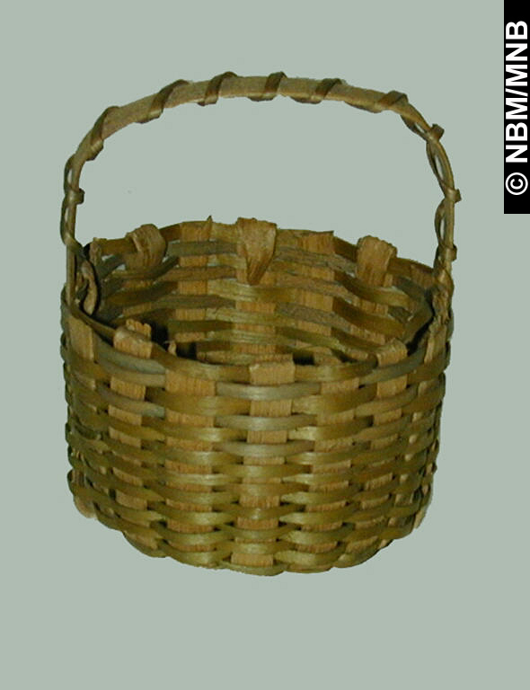 panier : 1875-1900 Premières Nations; Wolastoqiyik? éclisses de frêne teintes et tressées 6 x 5 cm Collection Musée du Nouveau-Brunswick Musée du Nouveau-Brunswick, (X6172) retournez |