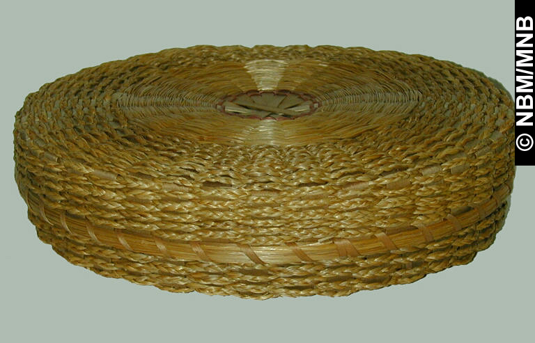 panier : 1890-1910 Premières Nations; Wolastoqiyik? éclisses de frêne tressées avec foin d'odeur tressé 6 x 21 x 21 cm Collection Musée du Nouveau-Brunswick Musée du Nouveau-Brunswick, (X6184) retournez |