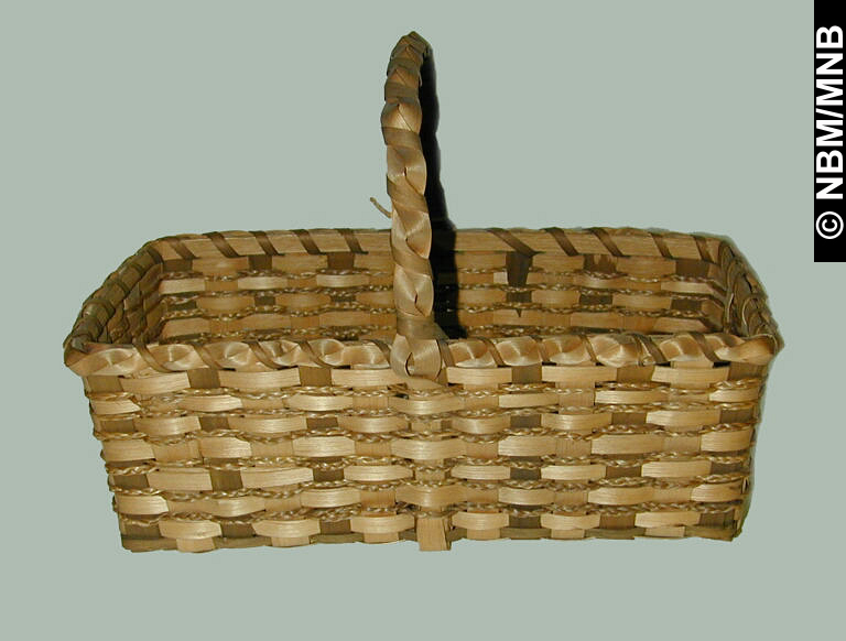 panier : v. 1915 Premières Nations; Wolastoqiyik? éclisses de frêne tressées avec foin d'odeur tressé 17 x 23 x 13 cm Collection Musée du Nouveau-Brunswick Musée du Nouveau-Brunswick, (X8084) retournez |