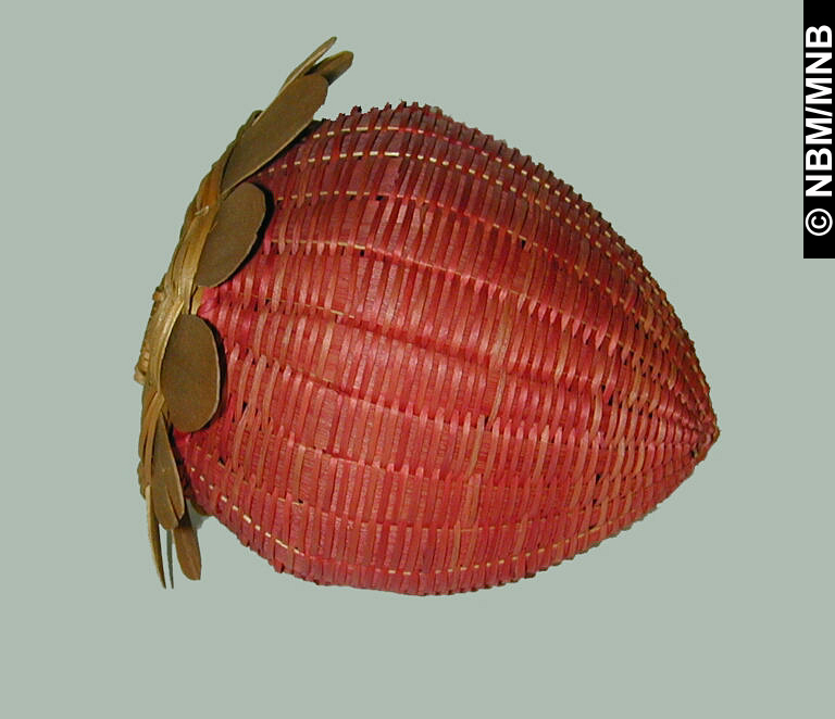 panier : Panier à fraises, v. 1900 Premières Nations; Mi’kmaq ou Wolastoqiyik ? éclisses de frêne teintes et tressées avec foin d’odeur 13 x 13 x 13 cm Collection Musée du Nouveau-Brunswick Musée du Nouveau-Brunswick, (X8180) retournez |