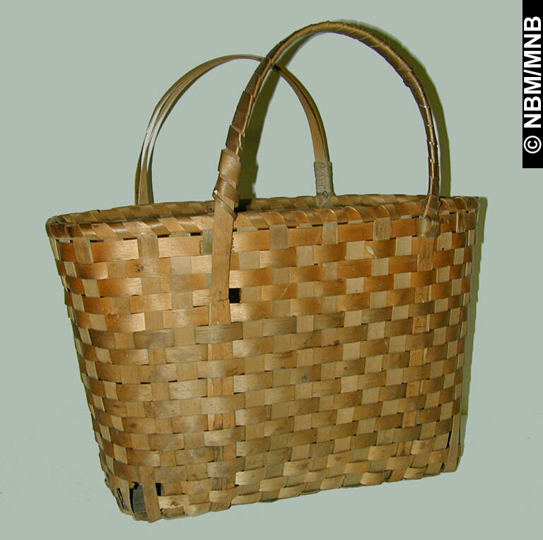 sac à main : 1900-1925 Premières Nations; Mi’kmaq ou Wolastoqiyik ? éclisses de frêne teintes et tressées avec bois 38 x 38 x 20 cm Collection Musée du Nouveau-Brunswick Musée du Nouveau-Brunswick, (X8925) retournez |