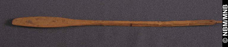 maquette d'une pagaie : 1900-1950 Premières Nations; Mi’kmaq ou Wolastoqiyik ? cèdre sculpté? 30,5 x 2 cm Collection Musée du Nouveau-Brunswick Musée du Nouveau-Brunswick, (X9160) Photographie de W. Mark Polchies retournez |