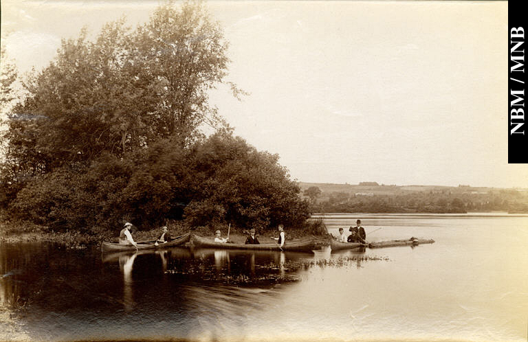 photographie : Chasseurs en canots wolastoqiyik près de Springhill, comté d'York, Nouveau-Brunswick, v. 1875
