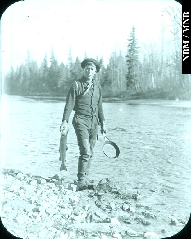 diapositive : Nicholas Lolar, guide wolastoqiyik tenant un grilse, rivière Restigouche, Nouveau-Brunswick, v. 1900 canadienne diapositive sur verre 8,2 x 10,2 cm Collection Musée du Nouveau-Brunswick Musée du Nouveau-Brunswick, (X15569) retournez |