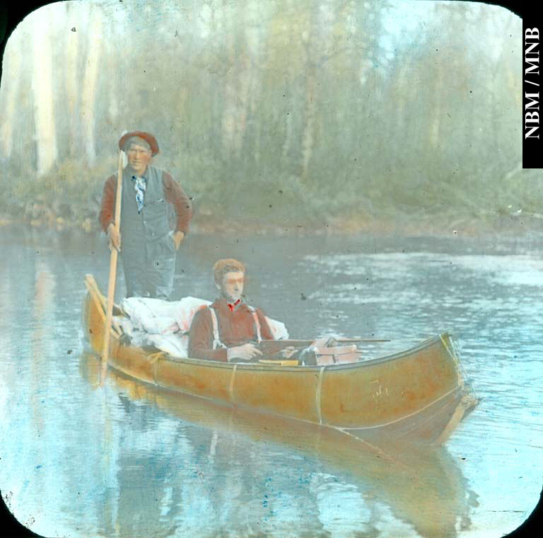 diapositive : W. Albert Hickman et Nicholas Lolar, guide wolastoqiyik, dans un canot, v. 1900