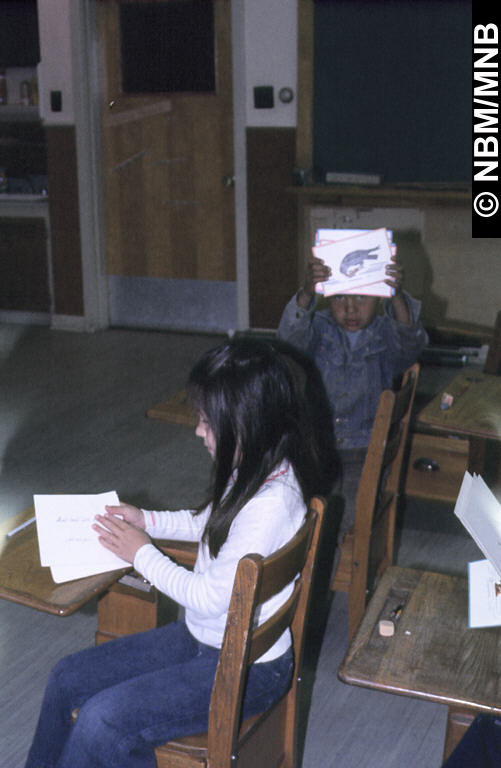 diapositive : Élèves apprennant du vocabulaire à l'école, Pilick (Première Nation de Kingsclear), Nouveau-Brunswick, mai 1976 canadienne diapositive couleur sous monture 4,9 x 4,9 cm Collection d'artisanat du Nouveau-Brunswick, 1995 Musée du Nouveau-Brunswick, (1995.27.263.13) retournez |