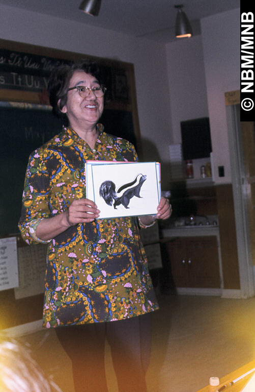 diapositive : Veronica Atwin enseignant le vocabulaire à l'école, Pilick (Première Nation de Kingsclear), Nouveau-Brunswick, mai 1976