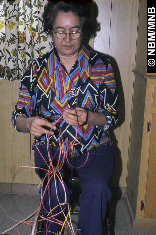 diapositive : Veronica Atwin choisit du frêne teint qui servira au tressage d'un panier , avril 1976 canadienne diapositive couleur sous monture 4,9 x 4,9 cm Collection d'artisanat du Nouveau-Brunswick, 1995 Musée du Nouveau-Brunswick, (1995.27.263.64) retournez |