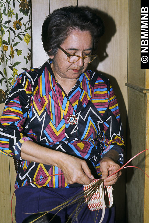 diapositive : Veronica Atwin met le rebord du panier en place et y fixe une bandelette décorative de foin d'odeur, avril 1976 canadienne diapositive couleur sous monture 4,9 x 4,9 cm Collection d'artisanat du Nouveau-Brunswick, 1995 Musée du Nouveau-Brunswick, (1995.27.263.75) retournez |