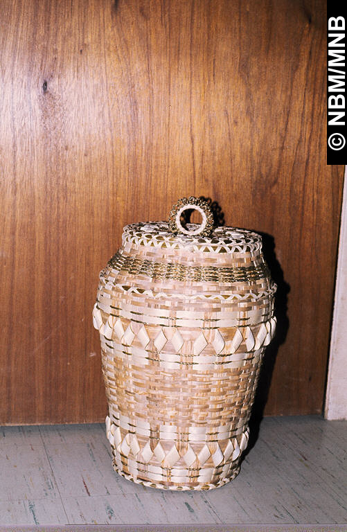 diapositive : Panier d'éclisses fabriqué par Veronica Atwin, juin 1976 canadienne diapositive couleur sous monture 4,9 x 4,9 cm Collection d'artisanat du Nouveau-Brunswick, 1995 Musée du Nouveau-Brunswick, (1995.27.263.88) retournez |