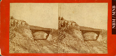stéréogramme : Pont routier au-dessus des voies ferrées, lac Lawlor, Brookville, comté de Saint John, Nouveau-Brunswick - v. 1875