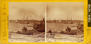 |  | John Saunders Climo stéréogramme : Vue de Market Slip montrant London House, J. W. Barnes & Co., J. McNichol & Son, Saint John, Nouveau-Brunswick - v. 1870 épreuve à l'albumine sur papier 10,2 x 13,2 cm Collection Musée du Nouveau-Brunswick (X11126) © Musée du Nouveau-Brunswick