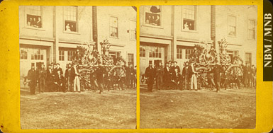 |  | James Ramsay Woodburn stéréogramme : Hommes non identifiés près du fourgon-pompe à vapeur numéro deux, Saint John, Nouveau-Brunswick - 1865-1873 épreuve à l'albumine sur carton 8,7 x 17,7 cm Collection Musée du Nouveau-Brunswick (X11780) © Musée du Nouveau-Brunswick